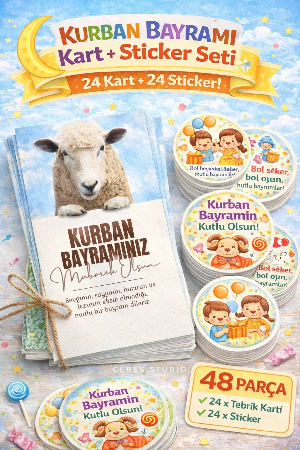 Kurban Bayramı Kart + Sticker Seti 4 (48 Parça)