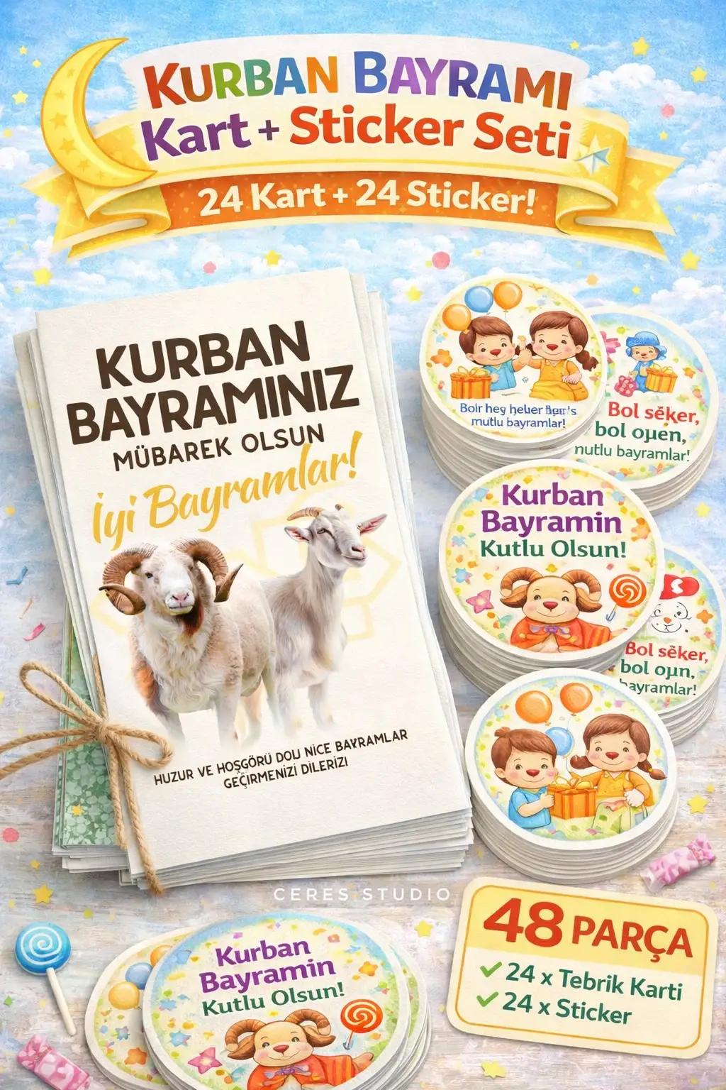 Kurban Bayramı Kart + Sticker Seti 5 (48 Parça)