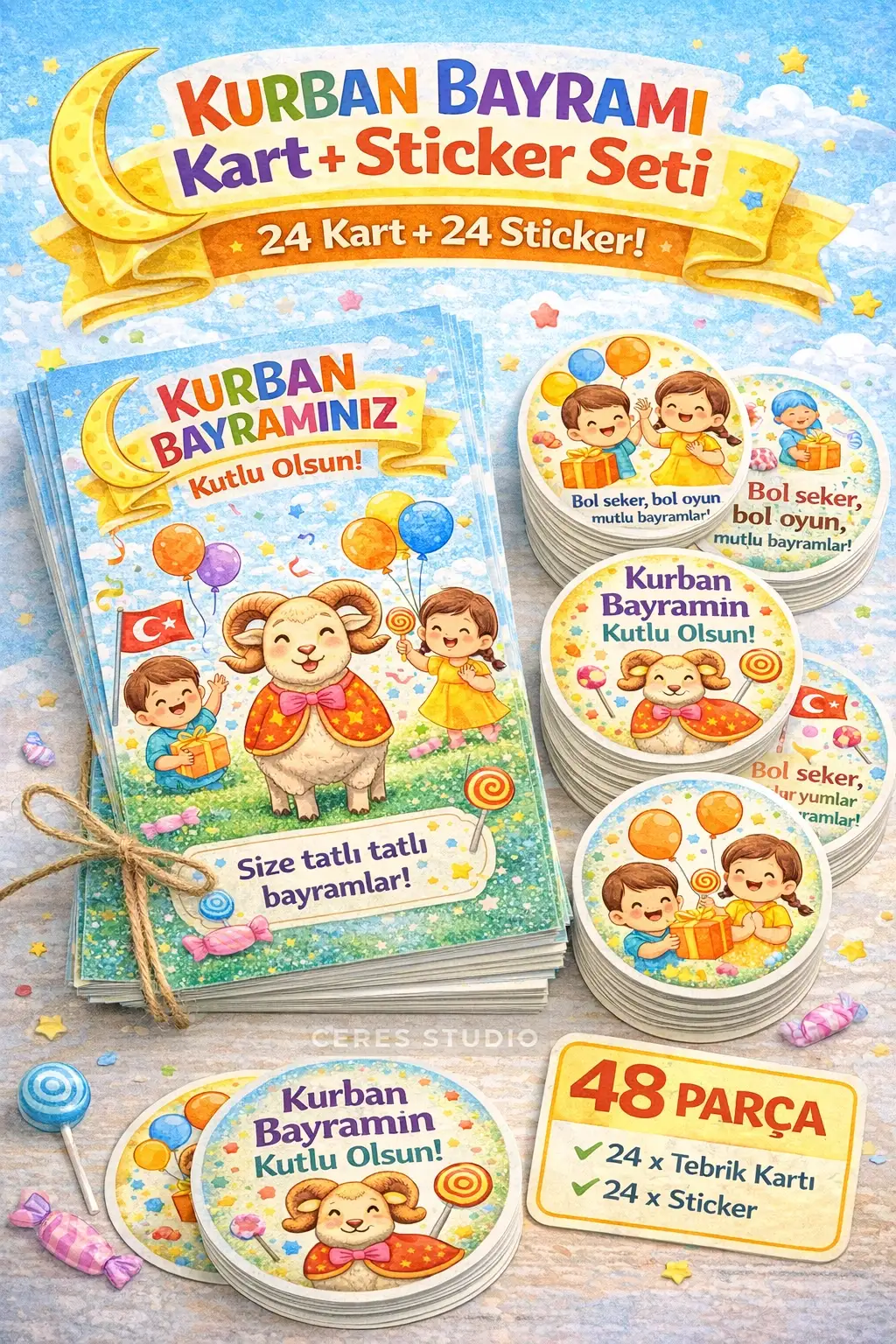 Kurban Bayramı Kart + Sticker Seti 1 (48 Parça)