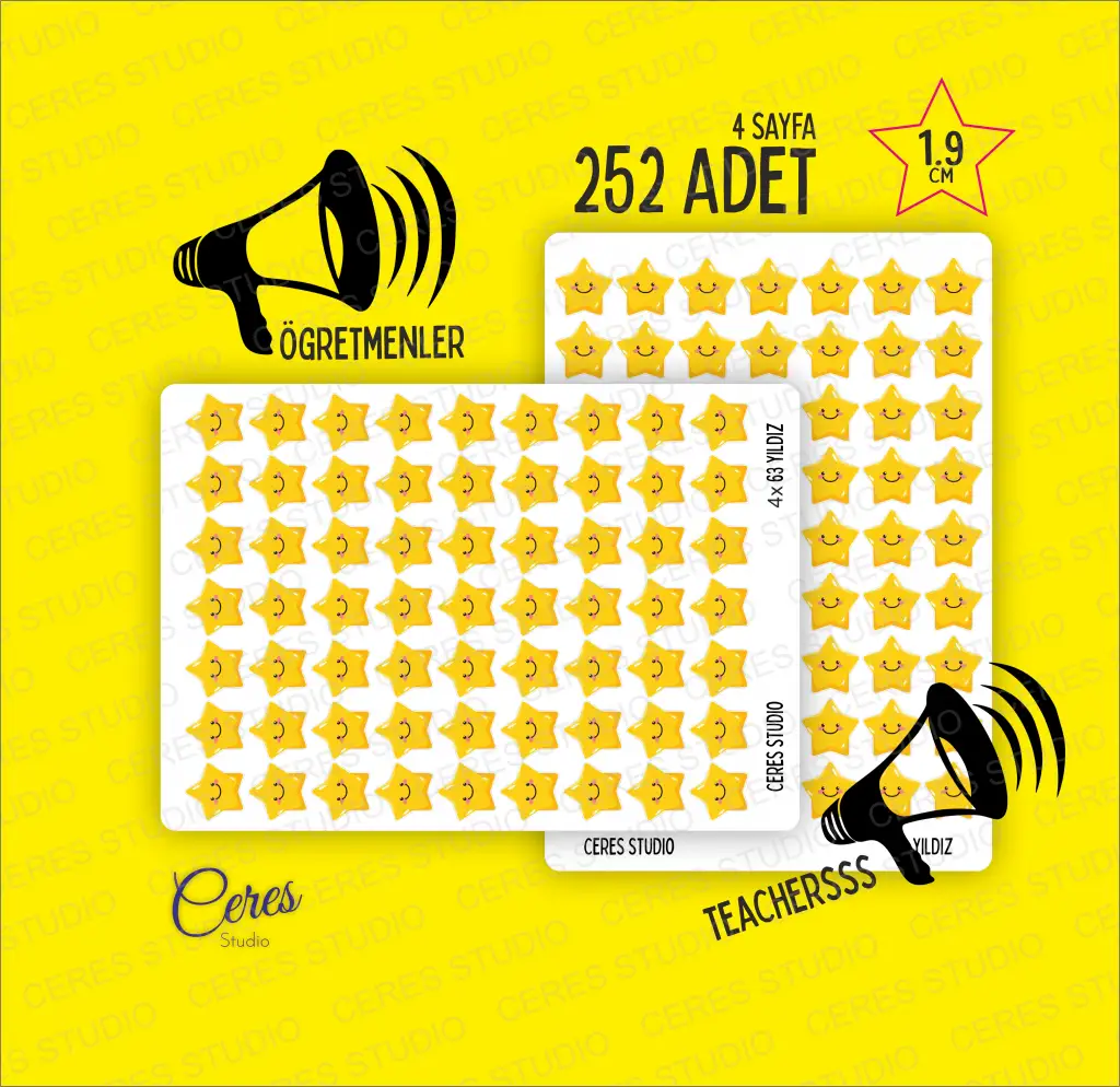 Öğretmenler Için Yıldız Etiket Star Sticker 4 Sayfa Toplam 252 Adet (1.9CM)