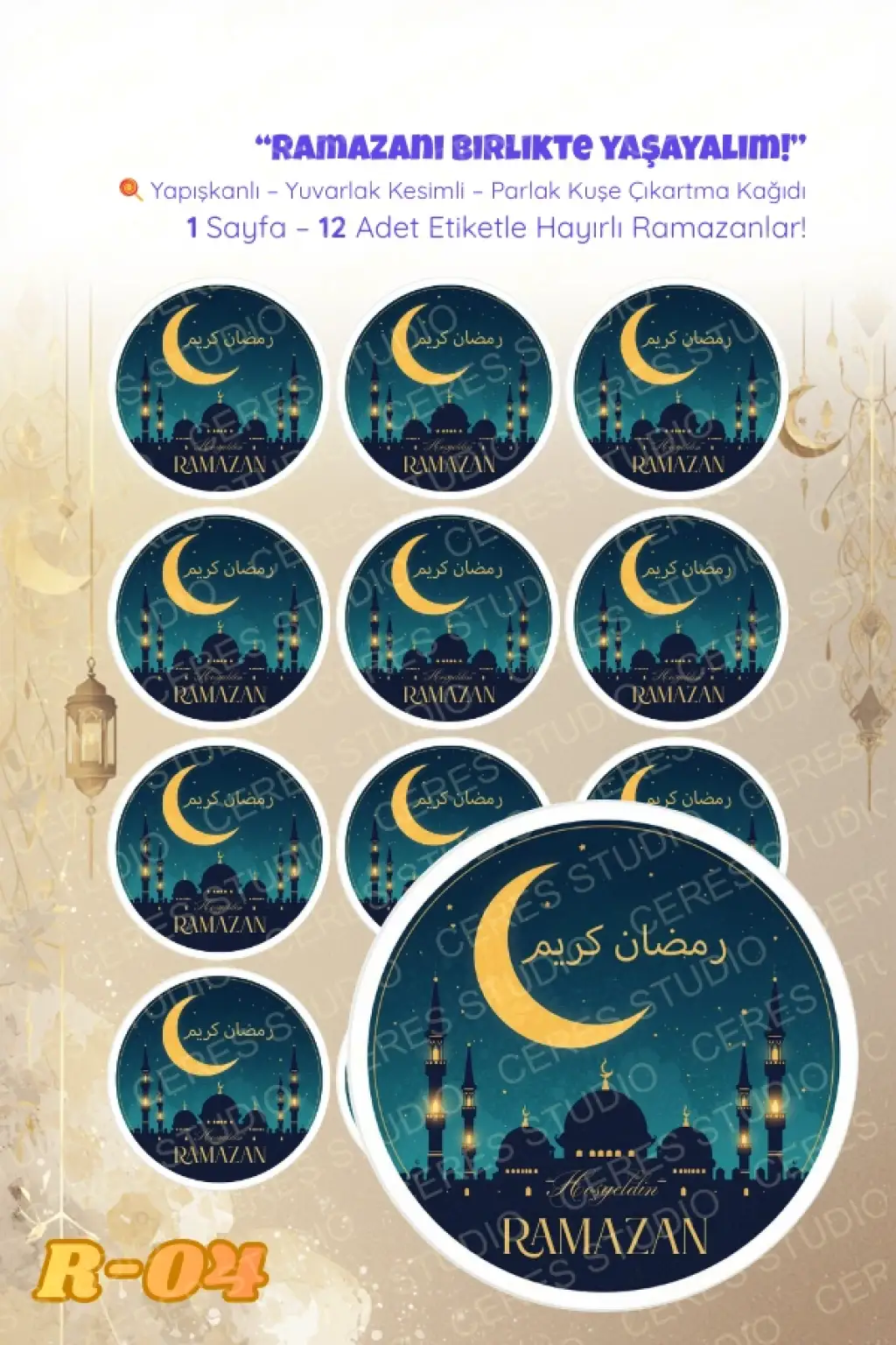 Ramazan Sticker Seti R-04 12 Adet Etiket | Yapışkanlı, Parlak Kuşe Çıkartma Kağıdı