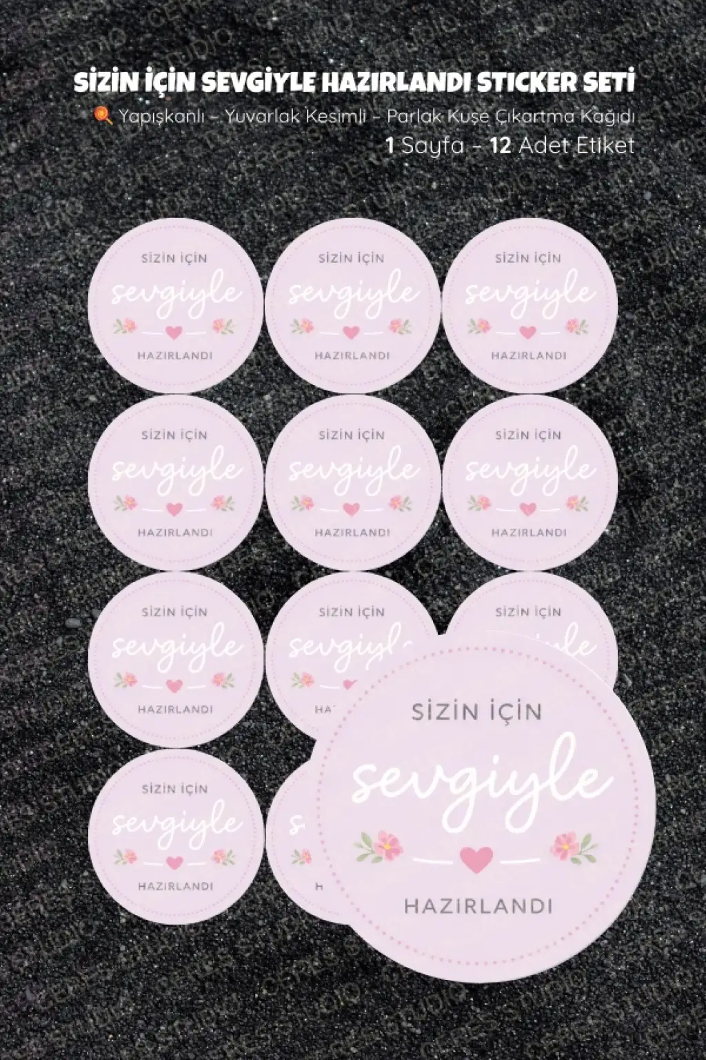Sizin için sevgiyle hazırlandı Sticker Seti Sİ-4 12 Adet Etiket | Yapışkanlı, Parlak Kuşe Çıkartma Kağıdı